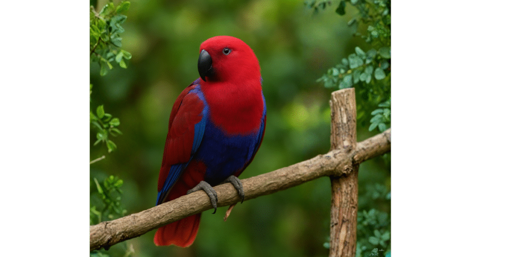El loro eclectus es famoso por su dimorfismo sexual extremo. Mientras que el macho es de un verde intenso, la hembra presenta un plumaje rojo oscuro con zonas de azul o púrpura. Sin embargo, en algunas subespecies, como Eclectus roratus riedeli, ese rojo puede tener matices rosados o rosado vino, especialmente en el pecho o cuello.