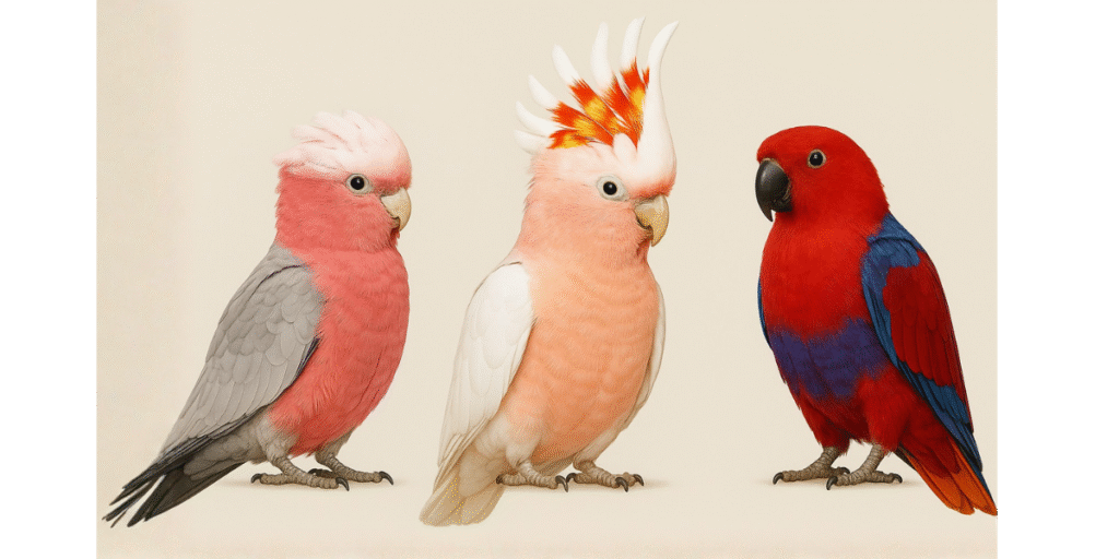 En el mundo de las psitácidas, el rosa no es un color común. La gran mayoría de loros en estado salvaje presentan tonos verdes, azules, amarillos o rojos. Las especies con plumajes rosados naturales son pocas y, en su mayoría, se encuentran en Australia y algunas islas del Pacífico.