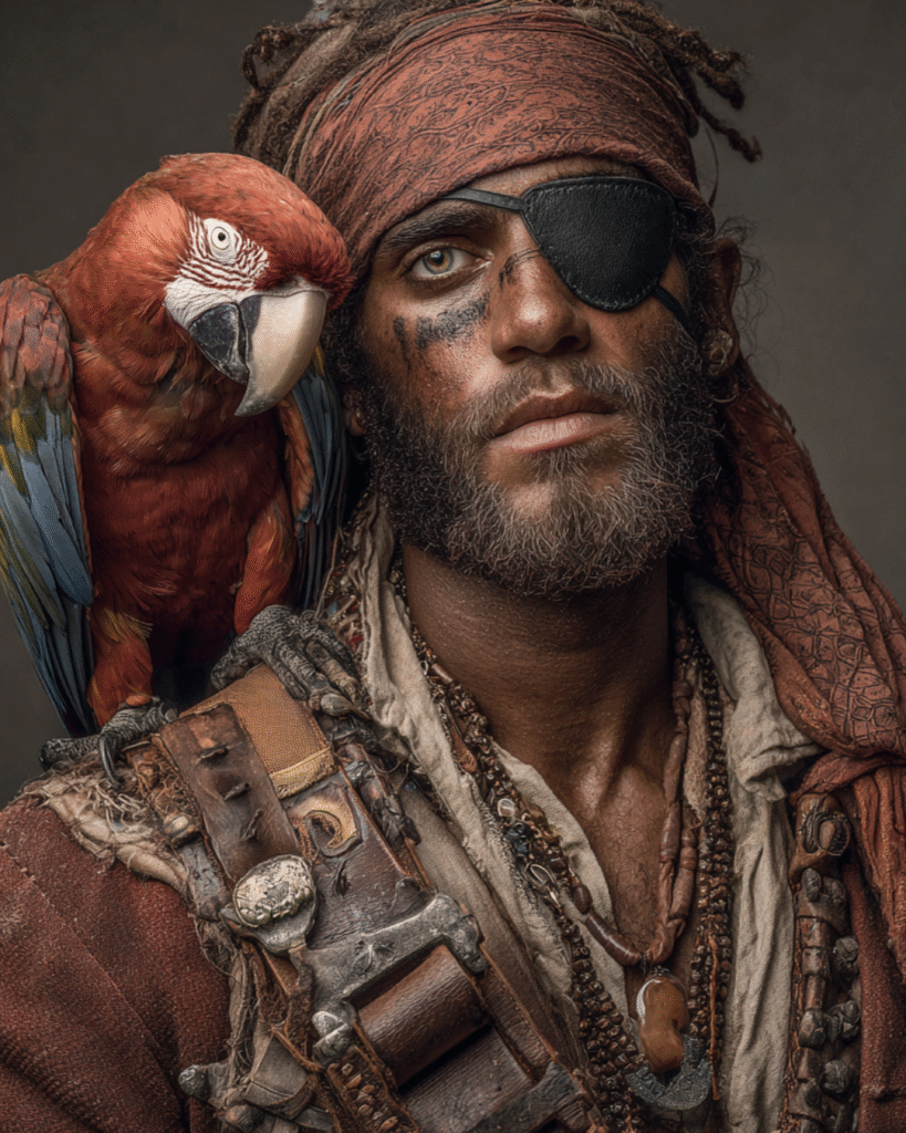 En la cultura pirata, la apariencia tenía un peso importante. Los piratas no solo buscaban el botín; también querían mostrar poder, experiencia y dominio sobre los mares. Llevar un animal exótico, como un loro tropical, funcionaba como una especie de trofeo: era la prueba viviente de que ese hombre había estado en tierras lejanas y peligrosas.